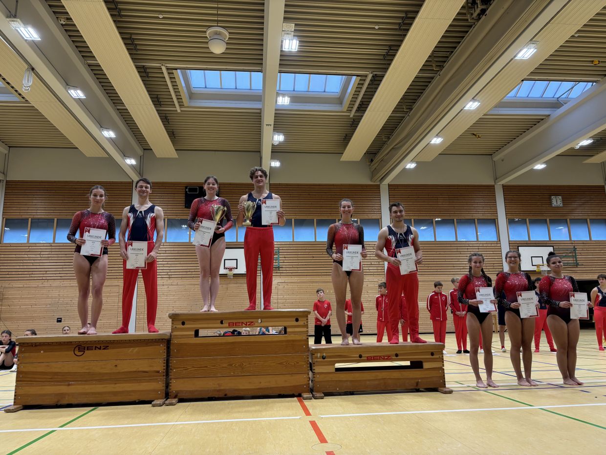 Am vergangenen Sonntag, 12.10.2025, fanden die diesjährigen Vereinsmeisterschaften statt. Die Fischerwörthhalle war mit 52 Turnerinnen und Turnern und rund 120 Zuschauenden gut gefüllt. Die Jüngsten mit sechs Jahren zeigten ihr bisher Erlerntes, während die aktiven Ligamannschaften die neuen Vereinsbesten aus ihren Reihen kürten.