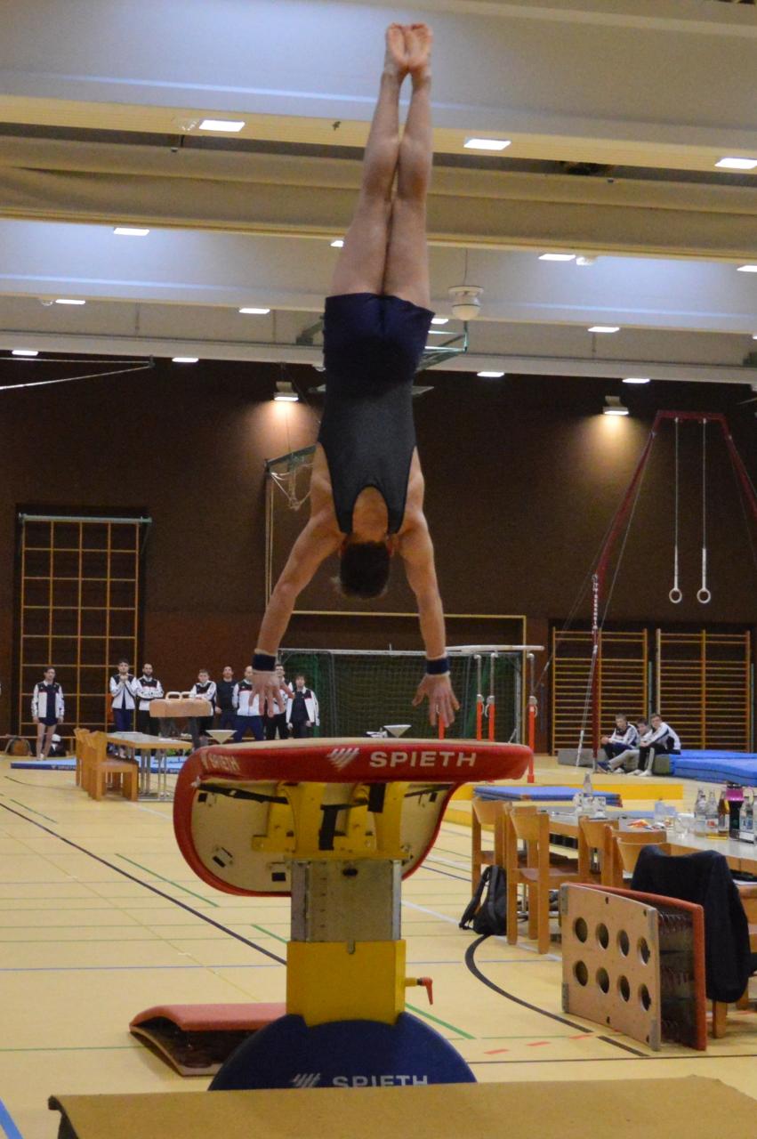 Damit können die TG-Turner die ersten Gerätepunkte seit dem 16. April 2016 bejubeln. Gegen den Favoriten aus Kirchheim hält die TG den Wettkampf bis zum letzten Turner mit, am Ende setzte sich die Klasse der Kirchheimer durch. „Die Jungs haben einen überragenden Wettkampf gezeigt. Die Niederlage ist natürlich bitter, aber eigentlich dürfen wir nicht traurig sein nach so einem bockstarken Wettkampf,“ lobt Bulling seine Turner. Endlich konnte Bulling seine besten Turner an die Geräte schicken, Jonas Klein turnte erstmals diese Saison Gleich am Boden legte die TG gut los: das Gerät wurde mit 49,55:50,4 Punkten zwar knapp verloren, Patrick Nägele (12,8), Daniel Nowak (12,55), David Majer (12,45), Klein (11,75) und Yannis Grau (11,55) macht den rund 100 Zuschauern in der Fischerwörth-Halle aber deutlich, dass heute um jedes Zehntel gekämpft wird. Auch das Pauschenpferd ging knapp an Kirchheim, 0,85 Punkte fehlten letztendlich. Bester TG’ler war Nägele (11,95), Pferd-Spezialist Mozer (11,7) überzeigte nach überstandener Krankheit ebenfalls. An den Ringen begann dann die Aufholjagd: Marco Vogel (11,3) und Nägele (11,75) zeigten ordentliche Übungen, Ringe-Ass Michael Grösch übertraf mit seinen 13,55 Punkten aber alles und sorgte mit einer nahezu perfekten Übung mit zwei Kreuzhängen für die ersten Gerätepunkte. Der Bann war gebrochen und nach der kurzen Einturnpause der letzten drei Geräte machte die TG weiter, wo sie vor der Pause aufgehört hatte: Sie sammelte Gerätepunkte. Mit Nägele (11,3), Klein (11,1), Grau (10,8), Nowak (10,7) und Majer (10,6) blieben alle fünf Springer mit ihrem Handstützüberschlag (Ausgangswert 11,6 Punkte) bei einem Abzug von maximal einem Punkt. Kirchheims Vorsprung schrumpfte auf 0,6 Punkte. Am Barren übernahm die Turngemeinschaft dann die Führung. Majer (10,9), Klein (11,1), Vogel (11,7) und Nägele (12,5) turnten ihre Übungen fast fehlerfreie durch und die TG gewann das Gerät 46,2:45,5 Punkte. Es kam zum großen Showdown am Königsgerät dem Reck, die Spannung in der Halle war riesig, der Druck auf den Turnern enorm. Klein legte mit 10,1 ordentlich vor, konnte seinem Gegner 0,6 Punkte abnehmen. Auch Grau (10,5) turnte sauber durch, die 9,1 des nächsten Kirchheimers wurde am Ende die Streichwertung des VfLs. Grösch erhielt 10,6 Punkte, zwei Zehntel mehr als sein Gegner. Hallensprecher Ralf Würth erhöhte die Spannung weiter, indem er keine weiteren Ergebnisse mehr verkündete. Nägele erhielt 10,85 Punkte, Vogel 9,6, die Kirchheimer-Übungen waren mit 11,3 und 11,8 letztendlich hochwertiger und dadurch ging der Sieg auch verdient an die Nachwuchsmannschaft des VfLs. Nägele turnte mit71,15 Punkten seinen ersten Sechskampf über die magische Punktzahl von 70 Zählern. „Das war ein deutliches Signal an die Konkurrenz, dass wir nicht der Punktelieferant der Liga sind. Ein paar Kleinigkeiten haben nicht ganz geklappt, wir können noch eine Schippe drauf legen“, warnt Bulling die noch kommenden Gegner. Über 270 Punkte hat die TG in ihrer langen Geschichte noch nicht erreichen können. Nächste Woche findet in Stuttgart der Turn-Weltcup DTB-Pokal in Stuttgart statt, deshalb pausiert die komplette Liga. Am 24. März gastiert die TG dann beim TSV Wernau II, dort kann bei einer Leistung wie am Sonntag mit weiteren Gerätepunkten gerechnet werden. In der Tabelle bleibt die TG Schlusslicht, hat mit der gezeigten Leistung aber die Chancen auf den Klassenerhalt deutlich erhöht und hat nun gleich viele Gerätepunkte wie der Dauerrivale WKG Murr/Erdmannhausen. Zum Derby und entscheidenden Wettkampf um den Klassenerhalt kommt es dann am 08. April in Sersheim.
