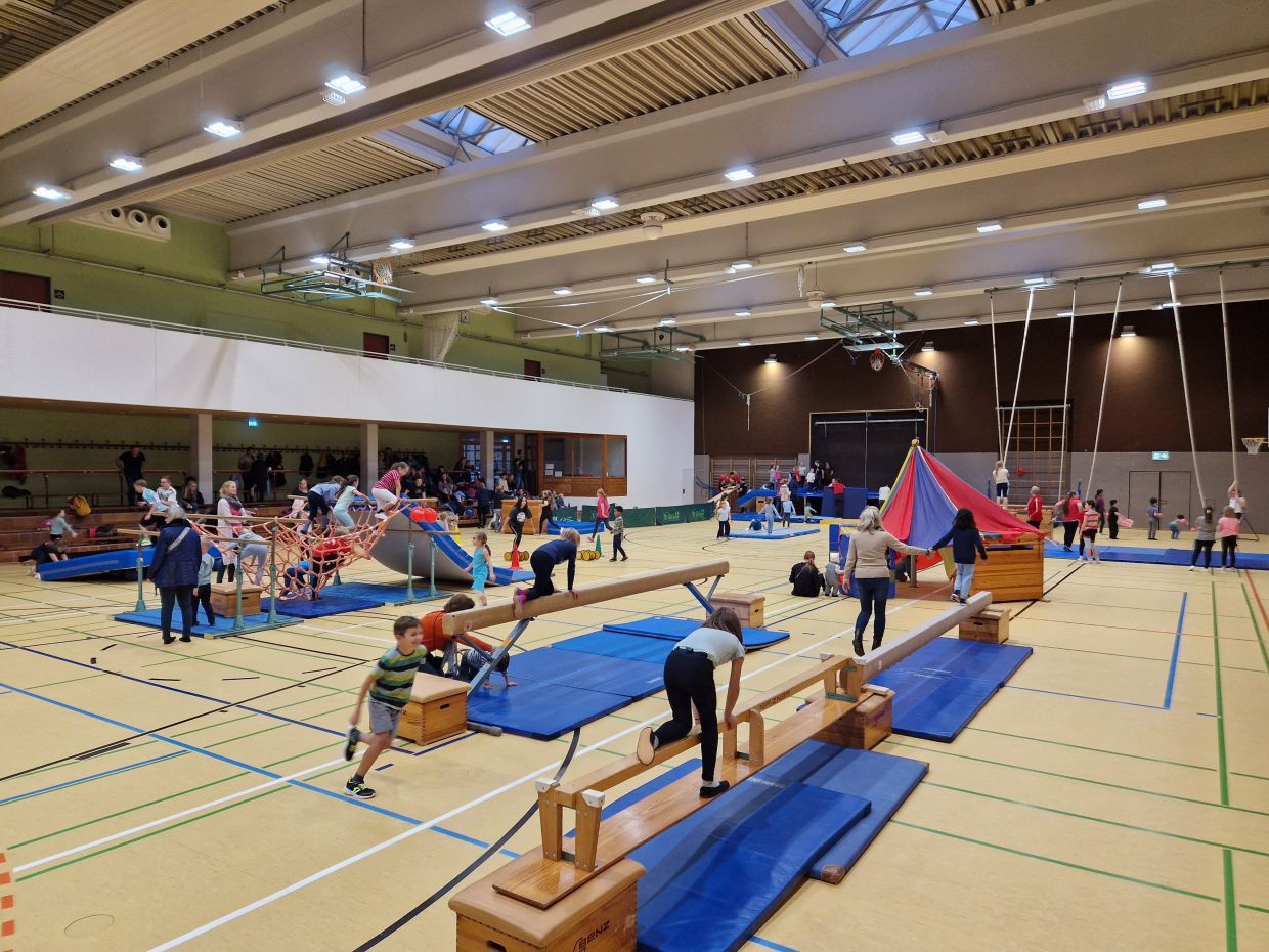 Am 08.11. fand der Tag des Kinderturnens in der Fischerwörth-Halle statt. Über 150 Kinder nahmen daran teil. Sie konnten sich in der ganzen Halle bewegen und die Bewegungslandschaft zum Thema Zirkus ausprobieren. Hoch im Kurs stand das Überqueren des Spinnennetzes und das Springen auf dem großen Trampolin. Alle teilnehmenden Kinder erhielten eine Urkunde für ihre Leistungen.