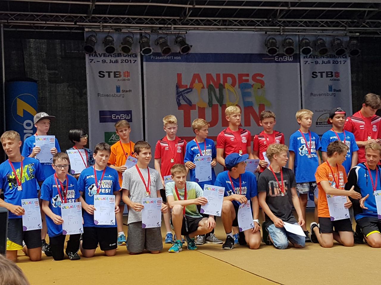 Am Samstagmorgen nahmen wir an einer Turnfestrally durch Ravensburg teil, bevor alle Teilnehmer nachmittags zum Wettkampf starteten. Am Abend ging es zur Turni-Gala in die Oberschwabenhalle. Wir sahen eine tolle Vorstellung mit Geräteturnen, Akrobatik und Tanz. Das mittlerweile aufgezogene starke Gewitter störte uns daher nicht.