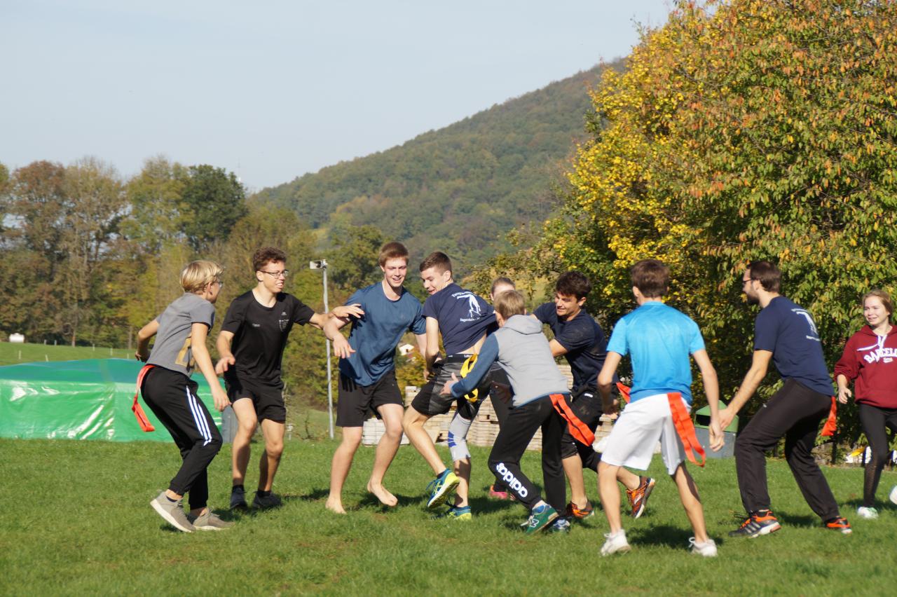 Nach der Ankunft und dem Beziehen der Zimmer ging es direkt ans traditionelle Lagerfeuer. Bevor die ersten kleinen Spaßspiele gespielt wurden, wurden gemeinsam Würste gegrillt und Lieder gesungen. Bei strahlendem Sonnenschein am Samstagmorgen stand das ebenfalls alljährliche Sportturnier auf dem Programm. Leider etwas eingeschränkt durch eine Baustelle um das Haus, versuchten sich die Turnerinnen und Turner dennoch an Flag Football, einer abgewandelten und kontaktlosen Variante von American Football. Nachdem alle Platzierungen ausgespielt wurden und sich alle beim Mittagessen gestärkt hatten, folgte ein gemeinsamesx Geländespiel rund um das Haus. Beim Showabend durften die Teilnehmer zurück auf die Schulbank und konnten sich in Minispielen rund um bekannte Schulfächer ausprobieren. Wie am Tag davor ließen dann alle den anstrengenden Tag am Lagerfeuer ausklingen. Den Sonntagmorgen konnten sich alle frei gestalten. Manche tobten sich dabei bei Frisbee und Baseball aus, andere spielten zusammen Vikingerschach. Nach dem Mittagessen hieß es dann schon wieder Koffer packen und putzen, bevor am Nachmittag alle müde aber glücklich die Abreise antraten.