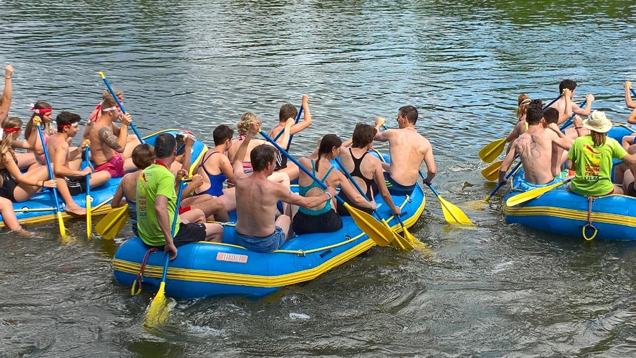 Die Abfahrt mit dem Bus erfolgte am Donnerstagmorgen bereits um 6.30 Uhr, eine kleine Gruppe reiste sportlich mit dem Fahrrad an. In der Schule in Ulm angekommen, breiteten die Ingersheimer ihre Luftmatratzen in insgesamt vier Klassenzimmern aus. Anschließend verteilten sich alle in Kleingruppen in Ulm und um Ulm herum. Auf dem Münsterplatz und der Messe warteten zahlreiche Mitmachangebote nur darauf, von den bewegungshungrigen Turnerinnen und Turnern genutzt zu werden. Andere genossen den schönen Blick auf den größten Kirchturm der Welt. Nach der Eröffnungsveranstaltung am Abend spielte noch eine Band auf der großen Bühne, danach ließen die meisten den Abend ruhig ausklingen, da am Freitagmorgen die ersten Wettkämpfe folgten. Der Großteil der Gruppe startete früh zu den Mannschaftsorientierungsläufen. Auch wenn nicht alle Teams gemeinsam das Ziel erreichten und mancher Ulmer nach dem Weg gefragt werden musste, erzielten die TVI’ler hervorragende Ergebnisse. Jürgen Baunacher, Jürgen Würth und Ralf Würth meisterten die 5km Strecke am schnellsten und sicherten sich die goldene Turnfest-Medaille, auf Platz drei folgten Sven Fritz, Daniel Nowak und Thomas Zeltwanger. Am Mittag erreichte Patrick Nägele im Deutschen Acht-Kampf den dritten Platz und sicherte sich zusätzlich die direkte Qualifikation zur Deutschen Mehrkampfmeisterschaft. Zeitgleich turnten die Ingersheimer Liga Turnerinnen und Turner bei der Team-Challenge mit. Zu zweit bzw. zu dritt wurde im Team Kür-Übungen gezeigt, die beste Wertung an jedem Gerät kam in die Wertung. Bei den Turnerinnen erreichten Lena Heusel, Anja und Nicole Haiber den 22. Platz, Ronny Lade und Mirko Salzer landeten auf dem 10. Platz. Am Samstag startete der Tag für einige Ingersheimer wieder im Wald beim Orientierungslauf. Mit noch größerem Erfolg, denn bei den Männern bis 39 Jahre landete Sven Fritz vor Thomas Zeltwanger auf dem ersten Platz. In der Altersklasse ab 40 Jahren belegte Jürgen Würth den Bronzeplatz. Als nächstes Highlight starteten drei Ingersheimer Schlauchboote im traditionellen Turnfestwettkampf „Der besondere Wettkampf“. Auf der Donau wurden erst 400 Meter gepaddelt, an einer Boje hieß es dann ab ins Wasser und die letzten 150 Meter mussten an Land geschwommen werden. Danach folgten 1,5 Kilometer zu Fuß, die Zeit wurde nach dem sechsten von zehn Teilnehmern gestoppt. Von 218 gestarteten Mannschaften erreichte der TVI die Plätze 2, 45 und 127. Der vorletzte Turnfesttag war aber noch lange nicht vorbei, denn 16 Ingersheimer und Sersheimer Mädels und Jungs hatten sich extra für das Turnfest etwas ganz Besonderes einfallen lassen. Gemeinsam studierten sie in den letzten Wochen eine Showvorführung zu „Hulapalu“ von Andreas Gabalier ein. In Dirndl und Lederhose zusammen mit viel Spaß, begeisterten sie das Publikum auf dem Ulmer Münsterplatz. Bei den baden-württembergischen Seniorenmeisterschaften erreichte in der Altersklasse 80+ Alfred Walther den zweiten Platz. Heide Nägele belegte ebenfalls Rang zwei im gemischten Wahlwettkampf in der Altersklasse 75 bis 79 Jahre. Nachdem am Sonntag der große Regen zum Glück erst nach dem obligatorischen Festzug einsetzte, konnte dieser noch entspannt gelaufen werden, bis alle am Nachmittag wieder zurück in Richtung Ingersheim aufbrachen.