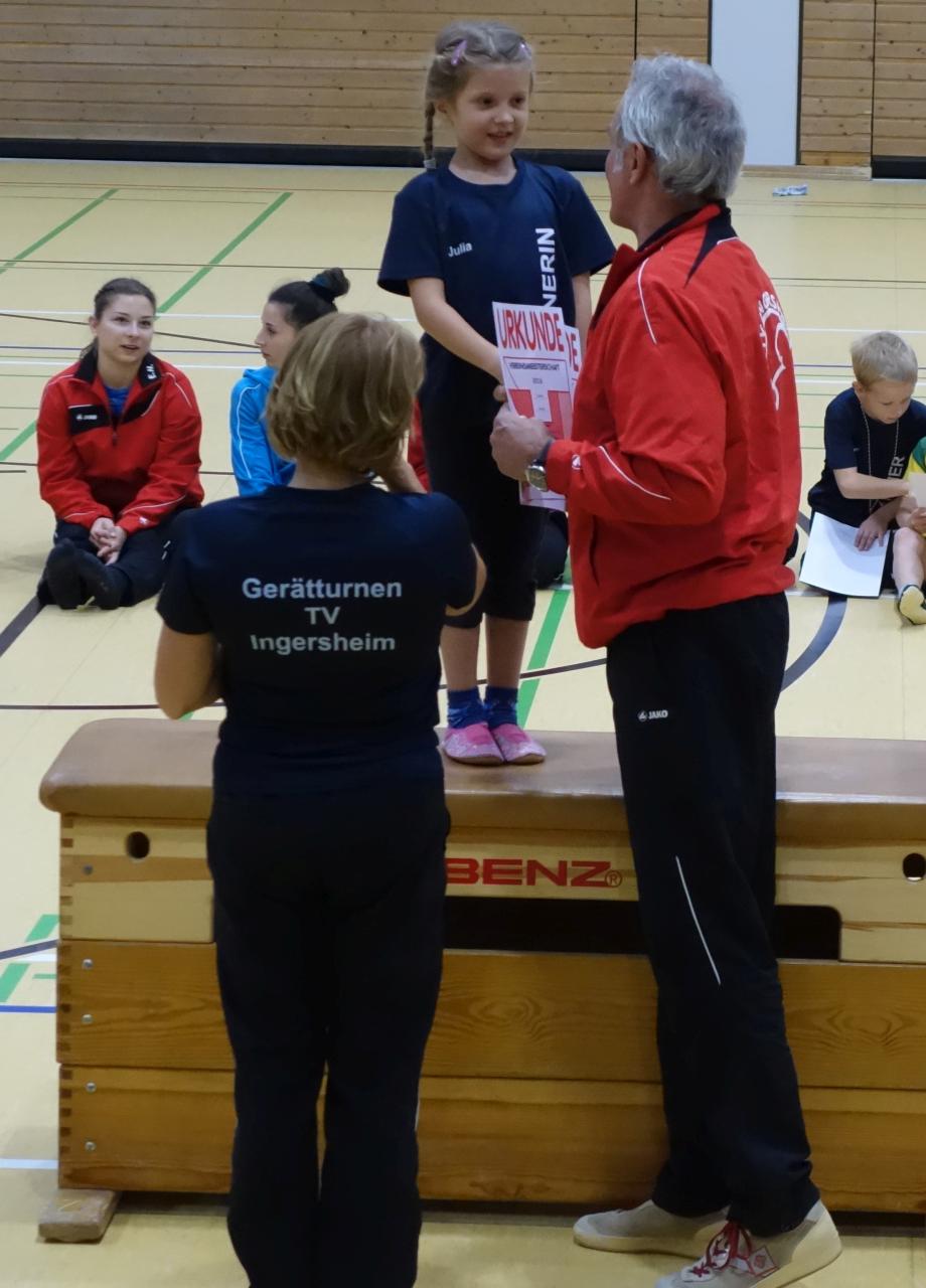 Der TV Ingersheim hat im Rahemen des 10. TVI-Turnfests seine diesjährigen Vereinsmeister in der Wettkampfgymnastik und Gerätturnen weiblich/männlich gekürt. Bei den Gymnastinnen verteidigte Jennifer Happold ihren Titel aus dem Vorjahr. Auch im Gerätturnen blieb alles beim Alten: Anja Haiber und Patrick Nägele erreichten Platz eins im Kür-Vier- bzw. Kür-Sechs-Kampf.