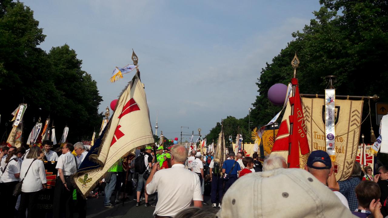 Zu Beginn war ein weiteres Highlight der Festumzug zwischen dem Brandenburger Tor und der Siegessäule auf der Straße des 17. Juni. Die Atmosphäre beindruckte nicht nur Fahnenträger Michael Haas, sondern auch die restlichen Ingersheimer, die in den knallgelben T-Shirts des Turngaus Neckar-Enz den Zuschauern aufgefallen sind. Die große Stadiongala, die auch Bundeskanzlerin Angela Merkel besuchte, ließen sich viele Ingersheimer nicht entgehen. Auf der Messe wurden die vielen Mitmachangebote getestet, Workshops besucht, Showvorführungen bestaunt oder sich mit anderen Turnern über die neusten