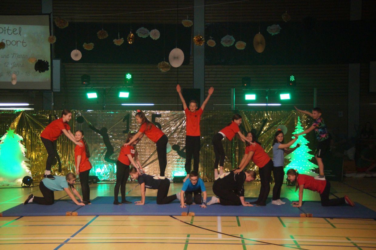 Über die verschiedenen Stationen wurde das Feuerwerk schlussendlich wortwörtlich entzündet und sowohl die aktiven Kinder als auch das gesamte Publikum feiert dies mit einem anhaltenden Applaus. Die Kinder wurden nach ihren Auftritten noch vom Christkind und dem Nikolaus überrascht und in die wohlverdiente Weihnachtspause verabschiedet. Ein herzliches Dankeschön an alle Übungsleiterinnen und Übungsleiter, das Organisationsteam, sowie an alle weiteren helfenden Hände, die dazu beigetragen haben, dass die diesjährige Kinderjahresfeier wieder etwas ganz Besonderes war.