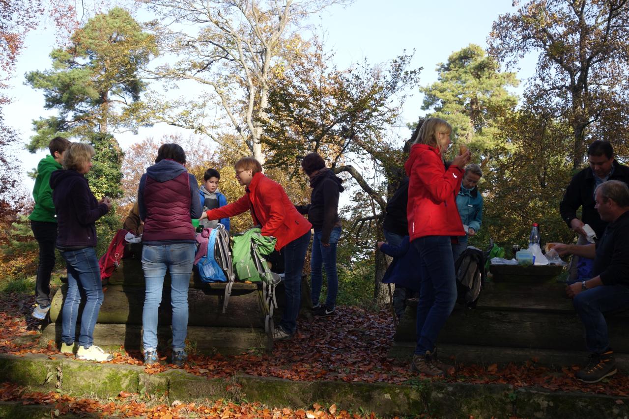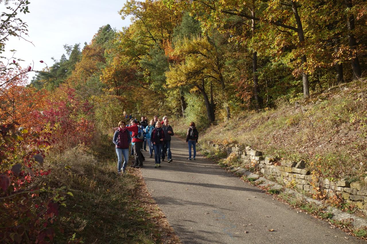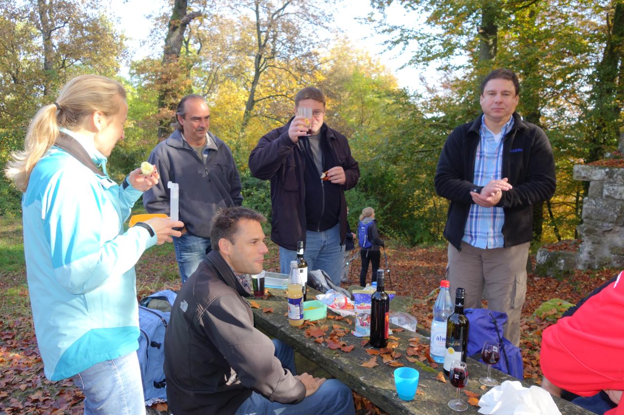 Bei schönstem Wetter, wanderten 44 Teilnehmer von Ochsenbach zur Burgruine Blankenhorn wo wir im Burghof ein ausgedehntes Vesper machten. Von dort ging es frisch gestärkt auf die zweite Etappe durch den Wald wo wir große Forstwirtschaftsmaschinen wie den Baumvollernter "Harvester" bestaunen konnten. Danach war es nicht mehr weit bis nach Tripsdrill, wo wir in der Gaststätte am Michaelsberg einkehrten. Dort wurden wir hervorragend bewirtet und ließen die Wanderung in gemütlicher Runde ausklingen. Vom Erlebnispark aus fuhren wir dann mit dem Bus zurück.