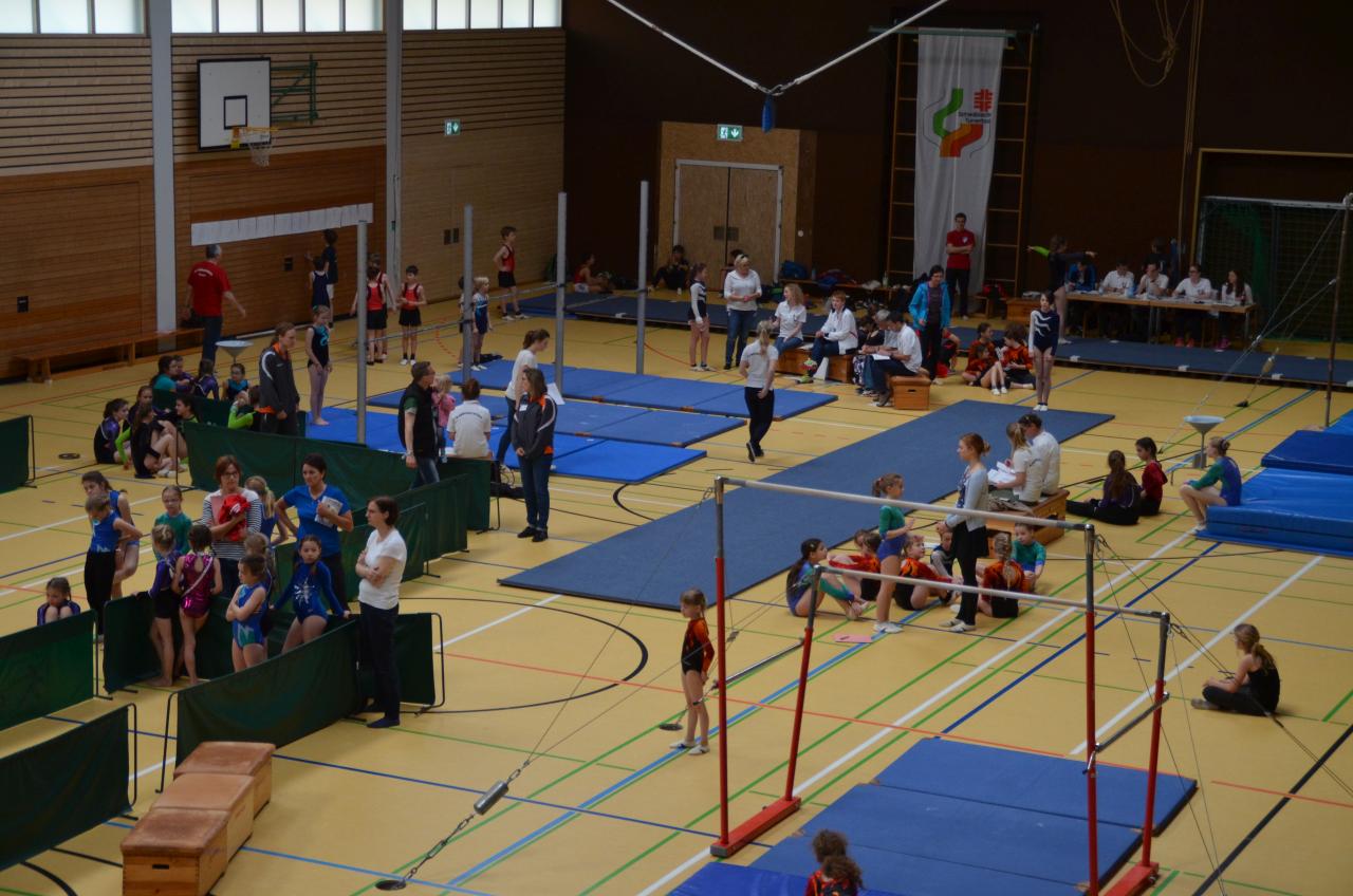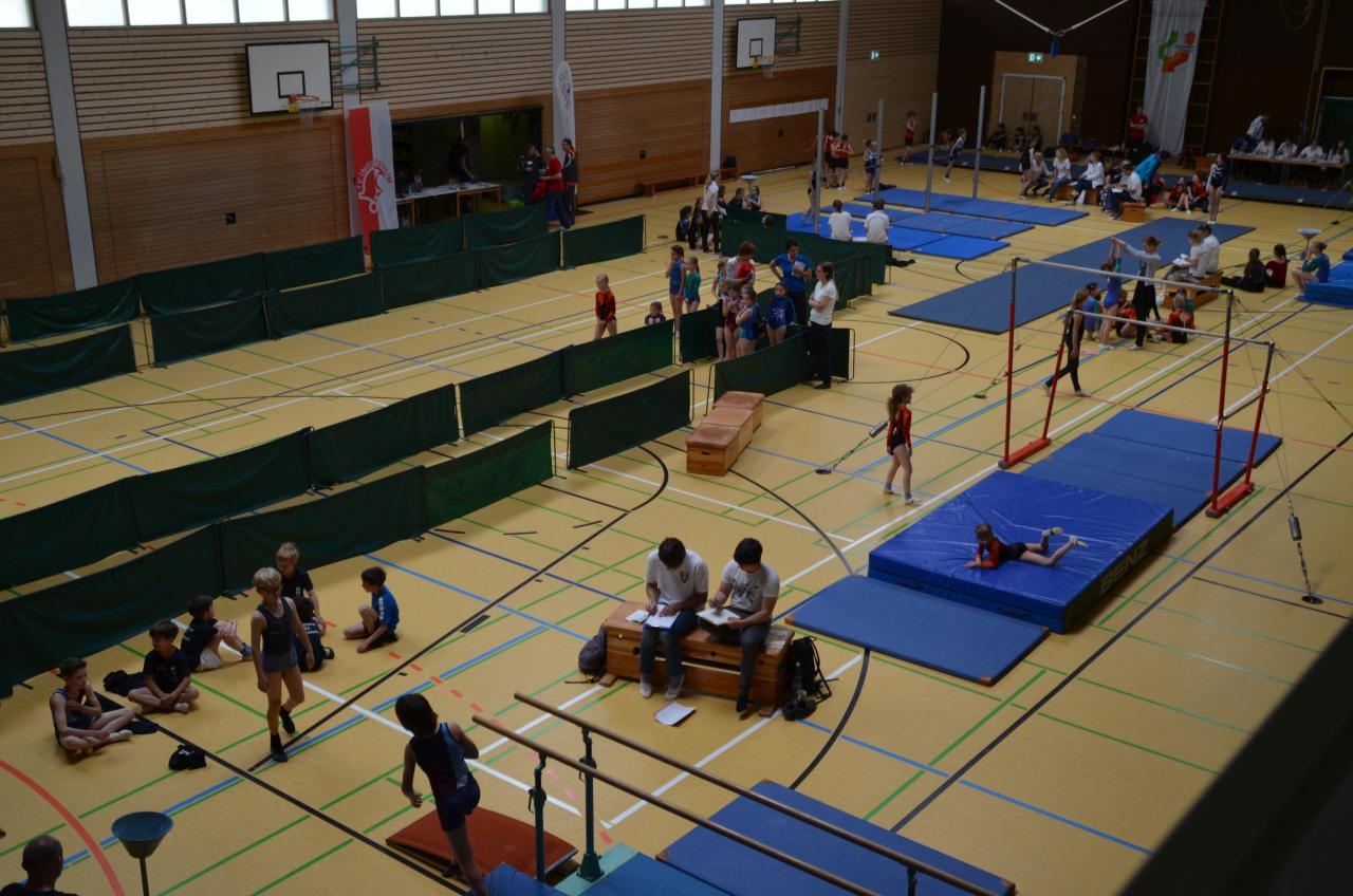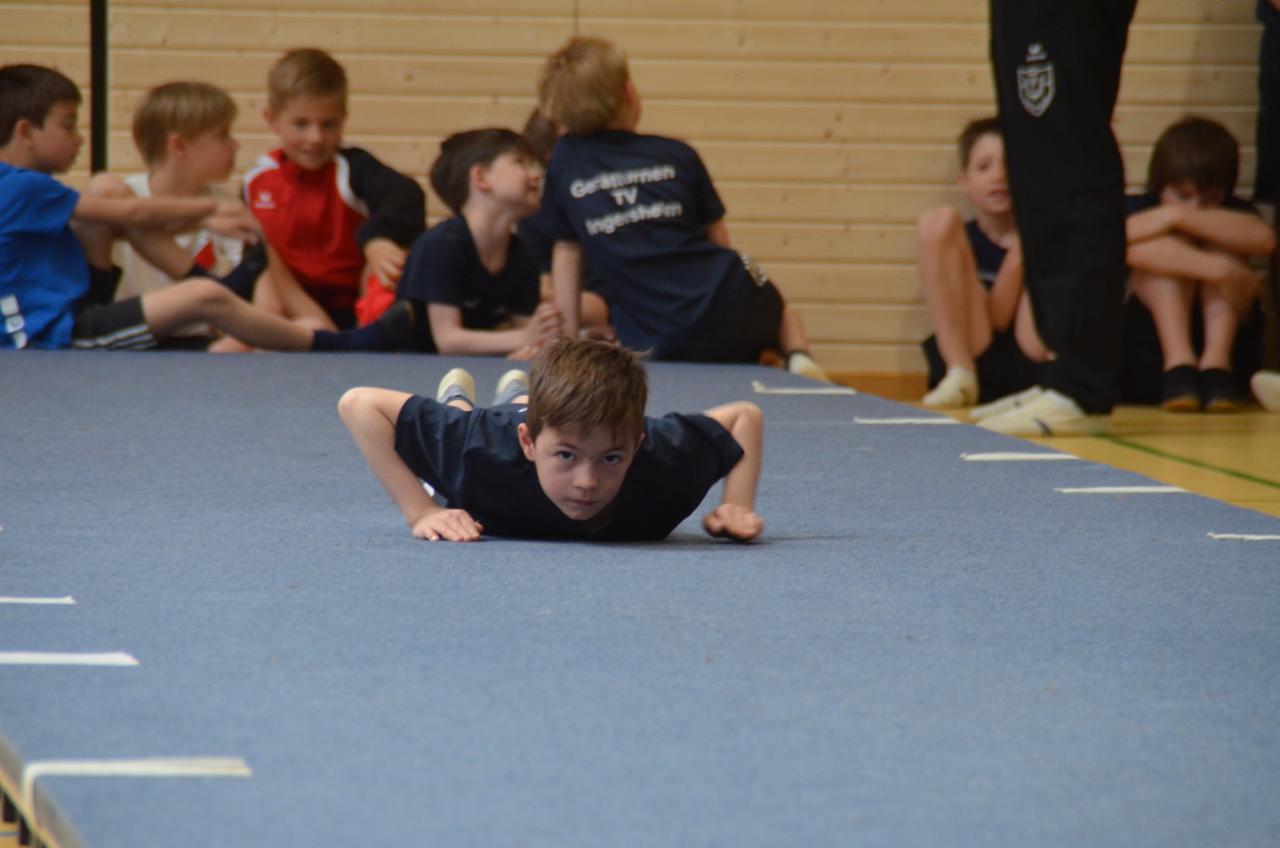 Beim bestem Wetter war der TV Ingersheim Ausrichter dieses Wettkampfes. Bei den Jungs mussten drei Geräte (Boden, Barren, Reck), sowie die drei leichtathletischen Disziplinen (Sprint, Weitsprung und Wurf) absolviert werden. Die Mädels zeigten ihre Übungen am Boden, Sprung und Reck, bzw. Stufenbarren.