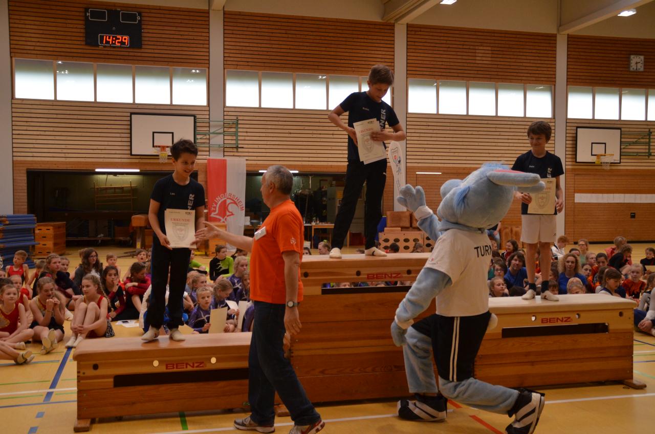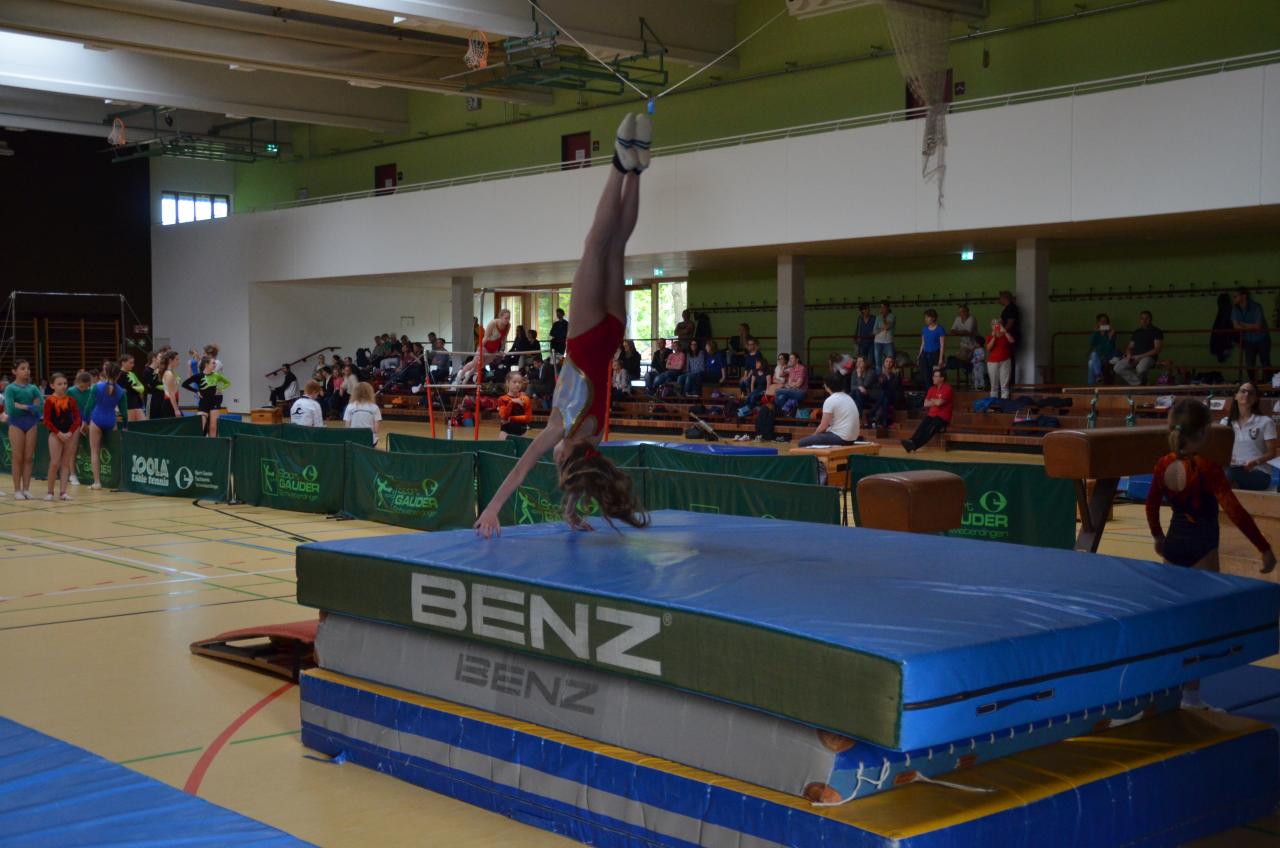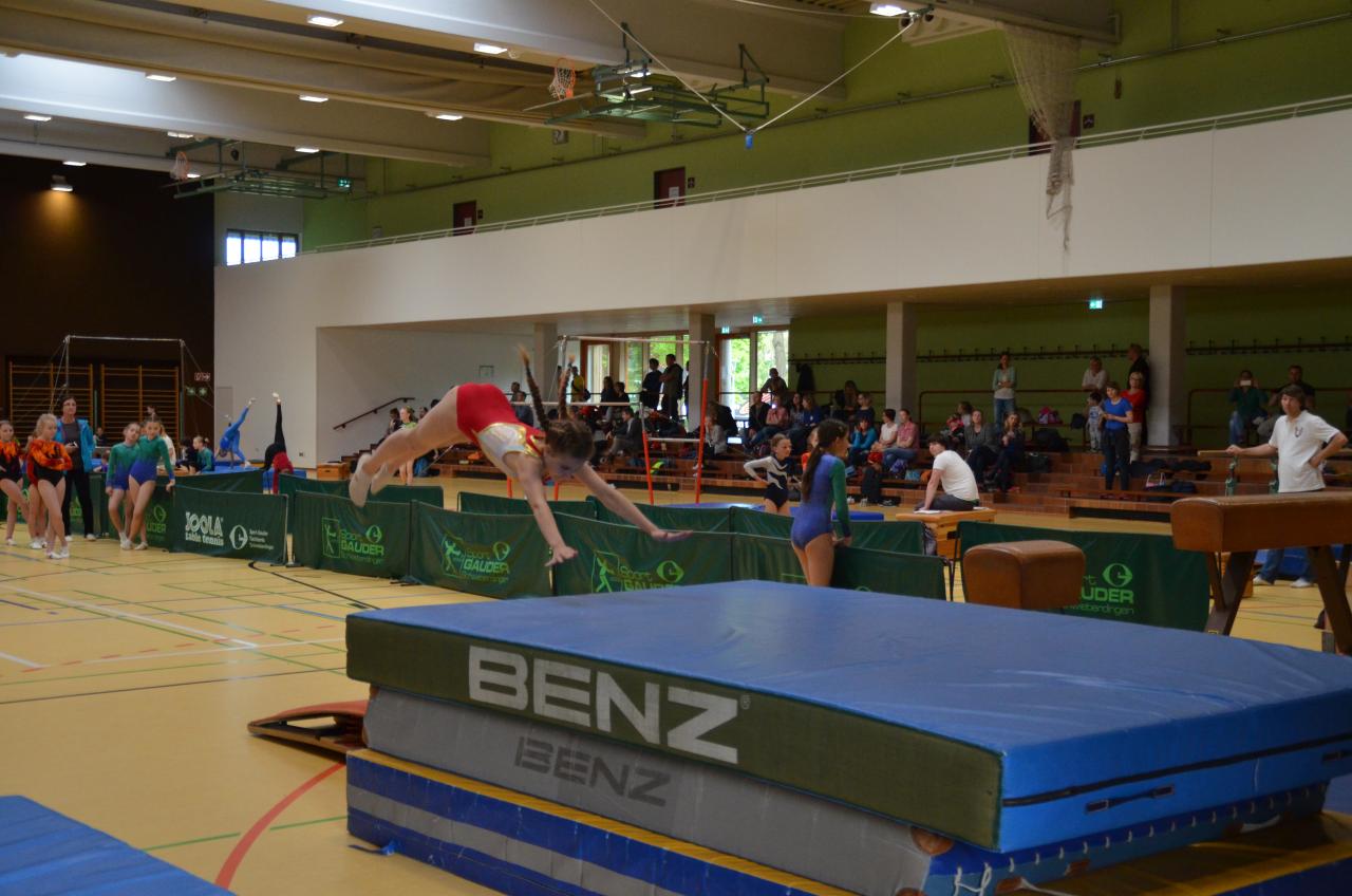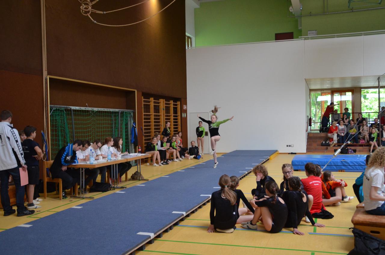 Beim bestem Wetter war der TV Ingersheim Ausrichter dieses Wettkampfes. Bei den Jungs mussten drei Geräte (Boden, Barren, Reck), sowie die drei leichtathletischen Disziplinen (Sprint, Weitsprung und Wurf) absolviert werden. Die Mädels zeigten ihre Übungen am Boden, Sprung und Reck, bzw. Stufenbarren.