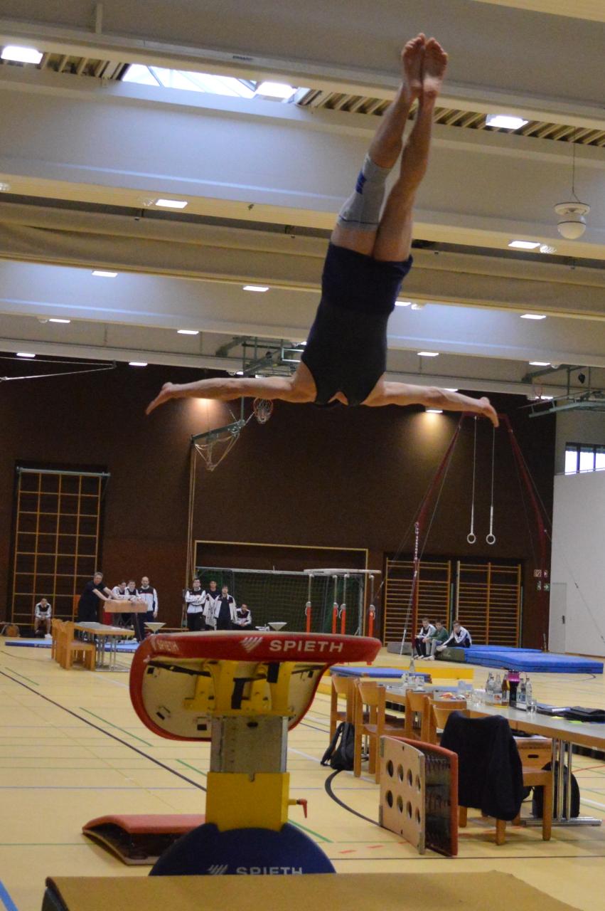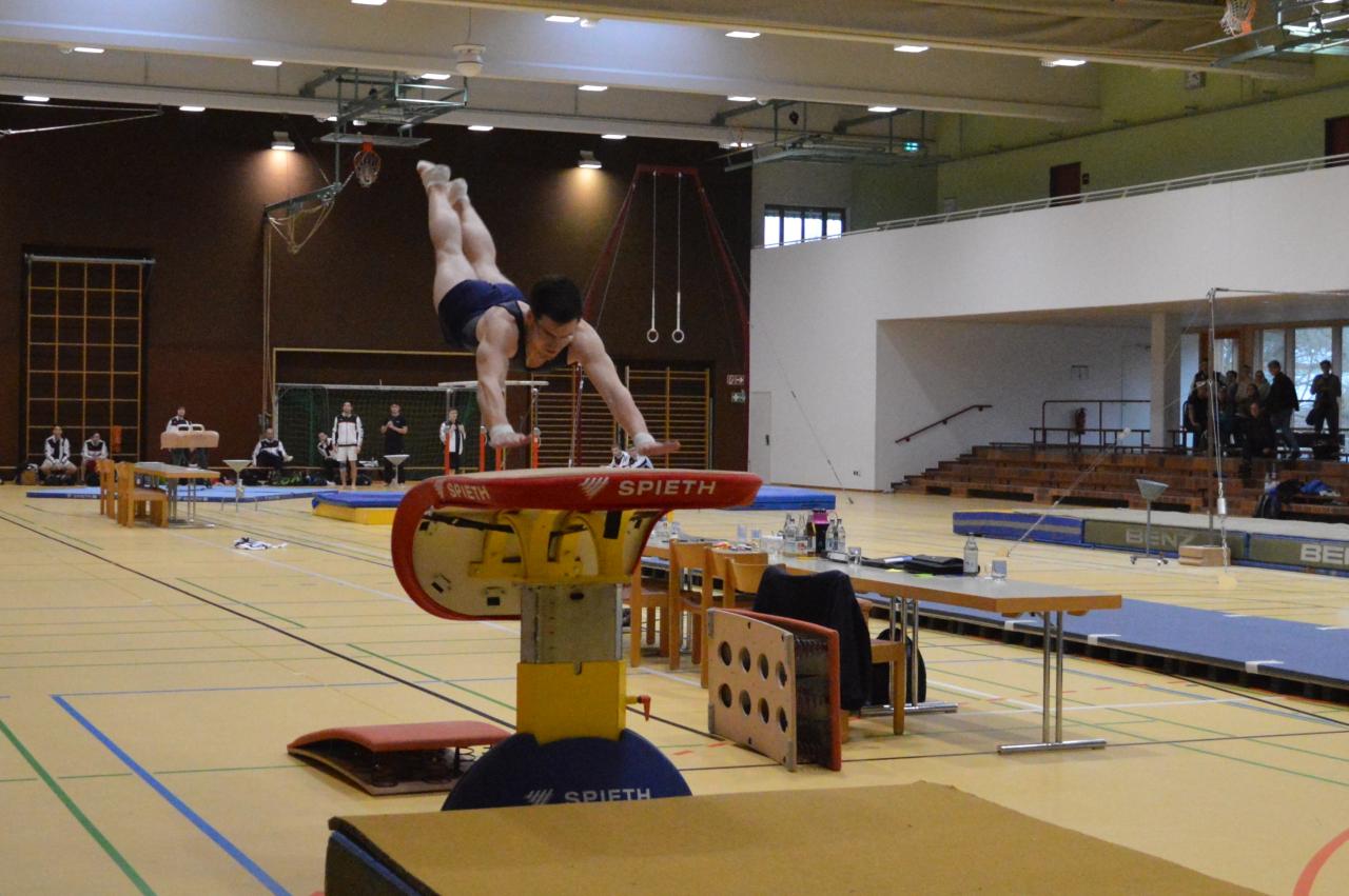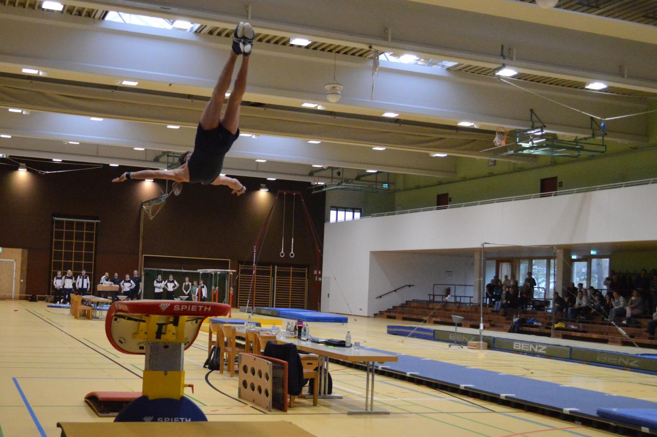 Damit können die TG-Turner die ersten Gerätepunkte seit dem 16. April 2016 bejubeln. Gegen den Favoriten aus Kirchheim hält die TG den Wettkampf bis zum letzten Turner mit, am Ende setzte sich die Klasse der Kirchheimer durch. „Die Jungs haben einen überragenden Wettkampf gezeigt. Die Niederlage ist natürlich bitter, aber eigentlich dürfen wir nicht traurig sein nach so einem bockstarken Wettkampf,“ lobt Bulling seine Turner. Endlich konnte Bulling seine besten Turner an die Geräte schicken, Jonas Klein turnte erstmals diese Saison Gleich am Boden legte die TG gut los: das Gerät wurde mit 49,55:50,4 Punkten zwar knapp verloren, Patrick Nägele (12,8), Daniel Nowak (12,55), David Majer (12,45), Klein (11,75) und Yannis Grau (11,55) macht den rund 100 Zuschauern in der Fischerwörth-Halle aber deutlich, dass heute um jedes Zehntel gekämpft wird. Auch das Pauschenpferd ging knapp an Kirchheim, 0,85 Punkte fehlten letztendlich. Bester TG’ler war Nägele (11,95), Pferd-Spezialist Mozer (11,7) überzeigte nach überstandener Krankheit ebenfalls. An den Ringen begann dann die Aufholjagd: Marco Vogel (11,3) und Nägele (11,75) zeigten ordentliche Übungen, Ringe-Ass Michael Grösch übertraf mit seinen 13,55 Punkten aber alles und sorgte mit einer nahezu perfekten Übung mit zwei Kreuzhängen für die ersten Gerätepunkte. Der Bann war gebrochen und nach der kurzen Einturnpause der letzten drei Geräte machte die TG weiter, wo sie vor der Pause aufgehört hatte: Sie sammelte Gerätepunkte. Mit Nägele (11,3), Klein (11,1), Grau (10,8), Nowak (10,7) und Majer (10,6) blieben alle fünf Springer mit ihrem Handstützüberschlag (Ausgangswert 11,6 Punkte) bei einem Abzug von maximal einem Punkt. Kirchheims Vorsprung schrumpfte auf 0,6 Punkte. Am Barren übernahm die Turngemeinschaft dann die Führung. Majer (10,9), Klein (11,1), Vogel (11,7) und Nägele (12,5) turnten ihre Übungen fast fehlerfreie durch und die TG gewann das Gerät 46,2:45,5 Punkte. Es kam zum großen Showdown am Königsgerät dem Reck, die Spannung in der Halle war riesig, der Druck auf den Turnern enorm. Klein legte mit 10,1 ordentlich vor, konnte seinem Gegner 0,6 Punkte abnehmen. Auch Grau (10,5) turnte sauber durch, die 9,1 des nächsten Kirchheimers wurde am Ende die Streichwertung des VfLs. Grösch erhielt 10,6 Punkte, zwei Zehntel mehr als sein Gegner. Hallensprecher Ralf Würth erhöhte die Spannung weiter, indem er keine weiteren Ergebnisse mehr verkündete. Nägele erhielt 10,85 Punkte, Vogel 9,6, die Kirchheimer-Übungen waren mit 11,3 und 11,8 letztendlich hochwertiger und dadurch ging der Sieg auch verdient an die Nachwuchsmannschaft des VfLs. Nägele turnte mit71,15 Punkten seinen ersten Sechskampf über die magische Punktzahl von 70 Zählern. „Das war ein deutliches Signal an die Konkurrenz, dass wir nicht der Punktelieferant der Liga sind. Ein paar Kleinigkeiten haben nicht ganz geklappt, wir können noch eine Schippe drauf legen“, warnt Bulling die noch kommenden Gegner. Über 270 Punkte hat die TG in ihrer langen Geschichte noch nicht erreichen können. Nächste Woche findet in Stuttgart der Turn-Weltcup DTB-Pokal in Stuttgart statt, deshalb pausiert die komplette Liga. Am 24. März gastiert die TG dann beim TSV Wernau II, dort kann bei einer Leistung wie am Sonntag mit weiteren Gerätepunkten gerechnet werden. In der Tabelle bleibt die TG Schlusslicht, hat mit der gezeigten Leistung aber die Chancen auf den Klassenerhalt deutlich erhöht und hat nun gleich viele Gerätepunkte wie der Dauerrivale WKG Murr/Erdmannhausen. Zum Derby und entscheidenden Wettkampf um den Klassenerhalt kommt es dann am 08. April in Sersheim.