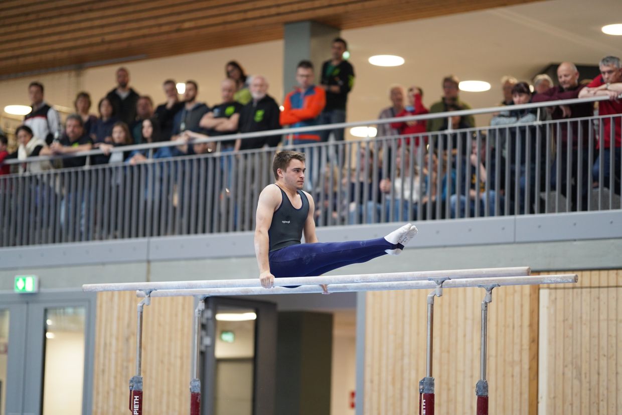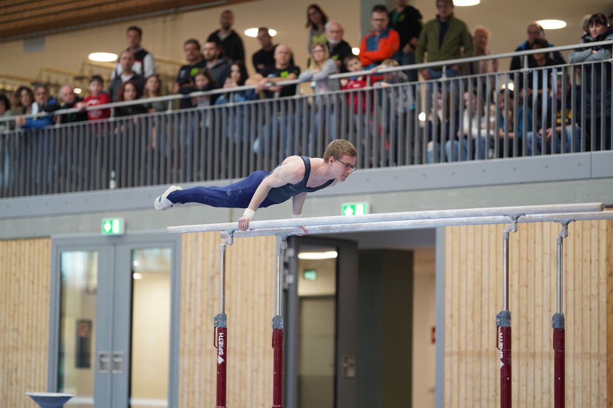 Äußerst sauber geturnte Barrenübungen, von denen auf Seiten der TG keine über 1,5 Punkte Abzug bekam, brachten die nächsten von insgesamt zehn Gerätepunkten an diesem Wettkampf auf das Konto der Ingersheimer und Sersheimer. Heraus stachen vor allem die Kür-Übungen von Jannis Noé (11,5 P.) und Luis Klink (11,7 P.).
