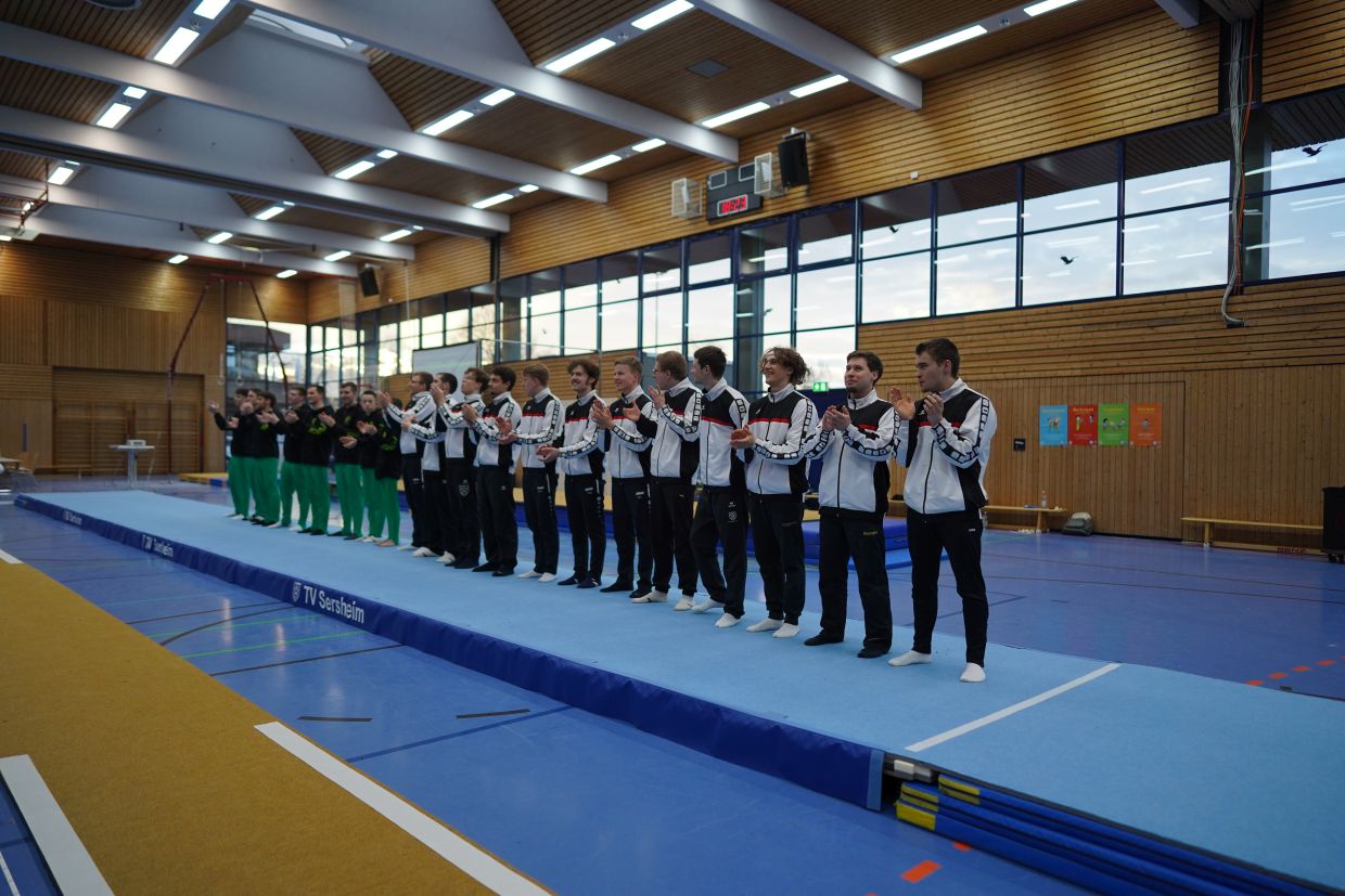 In der Heimmannschaft waren erneut vor allem Luis Klink und Timo Kögele mit jeweils einem 60+-Punkte-Sechskampf die Eckpfeiler. Kögele erreichte mit eindrucksvollen 13,50 Punkten am Boden die Tageshöchstwertung. Diese trug neben 12er-Wertungen von eben Luis Klink und Daniel Nowak dazu bei, dass die TG den Boden mit 49,1 zu 45,7 Punkten gewinnen konnte und sich so eine gute Grundlage für den Sieg im Wettkampf verschaffte.