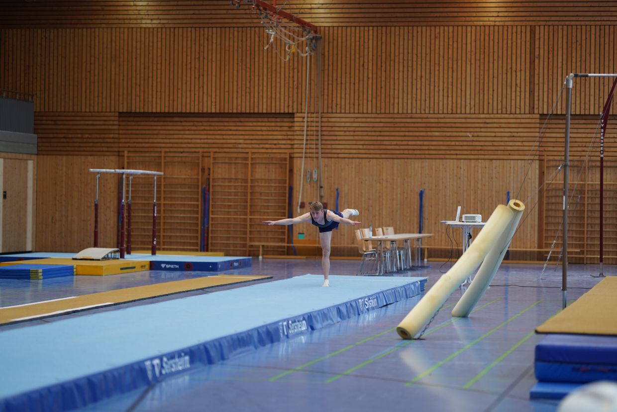 Das Ergebnis am Sprung war bis zum letzten Turner offen, da sich beide Mannschaften mit sauber geturnten Überschlägen auf Augenhöhe begegneten. Aufgrund eines Sturzes des letzten Turners auf der Seite der Gäste konnte die TG den Sprung mit 43,15 zu 42,0 Punkten gewinnen.