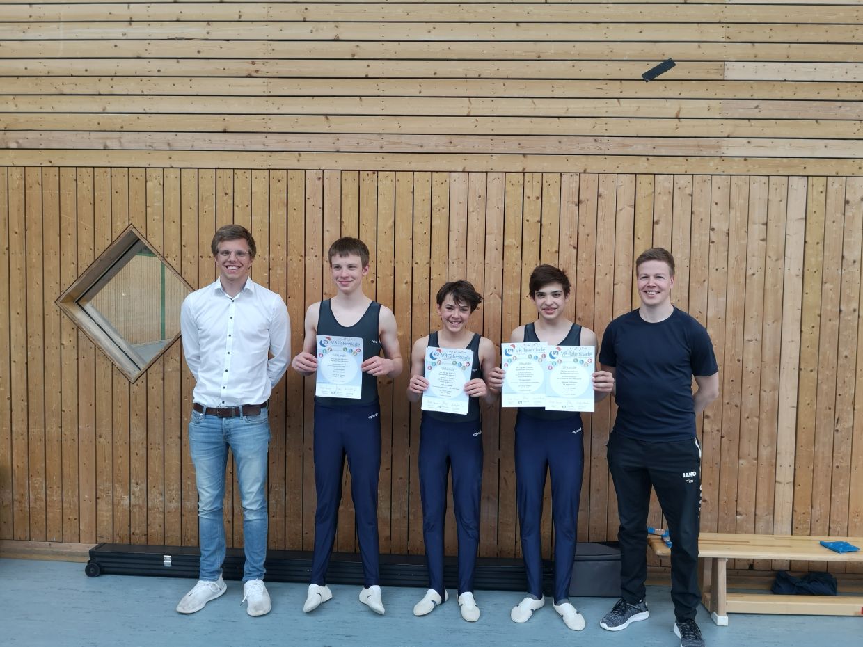 Drei Turner des TV Ingersheims traten am vergangenen Samstag, 09.04.2022, bei den Jahrgangsbestenkämpfen in Ludwigsburg an. Tim Recklebe, Samuel Talheimer und Lukas Wegst bildeten gleichzeitg zusätzlich eine Mannschaft beim den parallel ausgetragenen Gaumannschaftsmeisterschaften Pflicht. Bei beiden Wettkämpfen traten die Turner in der offenen Klasse und dabei „leider“ ohne Konkurrenz an. Dennoch wurde der Wettkampf gerne angenommen und als Übung für den ersten Pflicht-Sechskampf genutzt. Schließlich qualifizierte sich sowohl das Team, als auch alle drei Turner im Einzel für das jeweilige Bezirksfinale. Im Einzelwettkampf konnte sich Tim (78,55 Punkte) durchsetzen. Dicht gefolgt von seinen beiden Teamkollegen Lukas (77,95 P.) und Sam (77,05 P.).